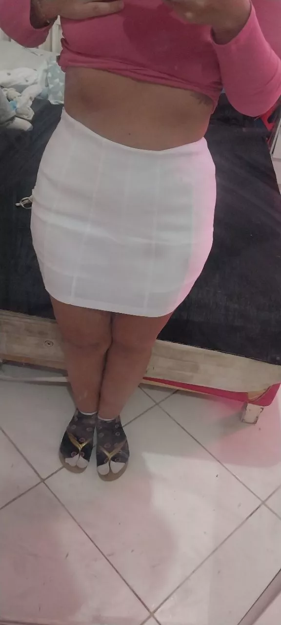 Nosso short saia é saia na frente e atrás o short é embutido por dentro