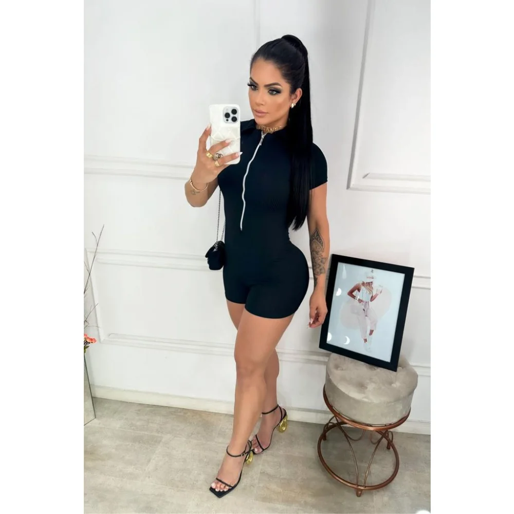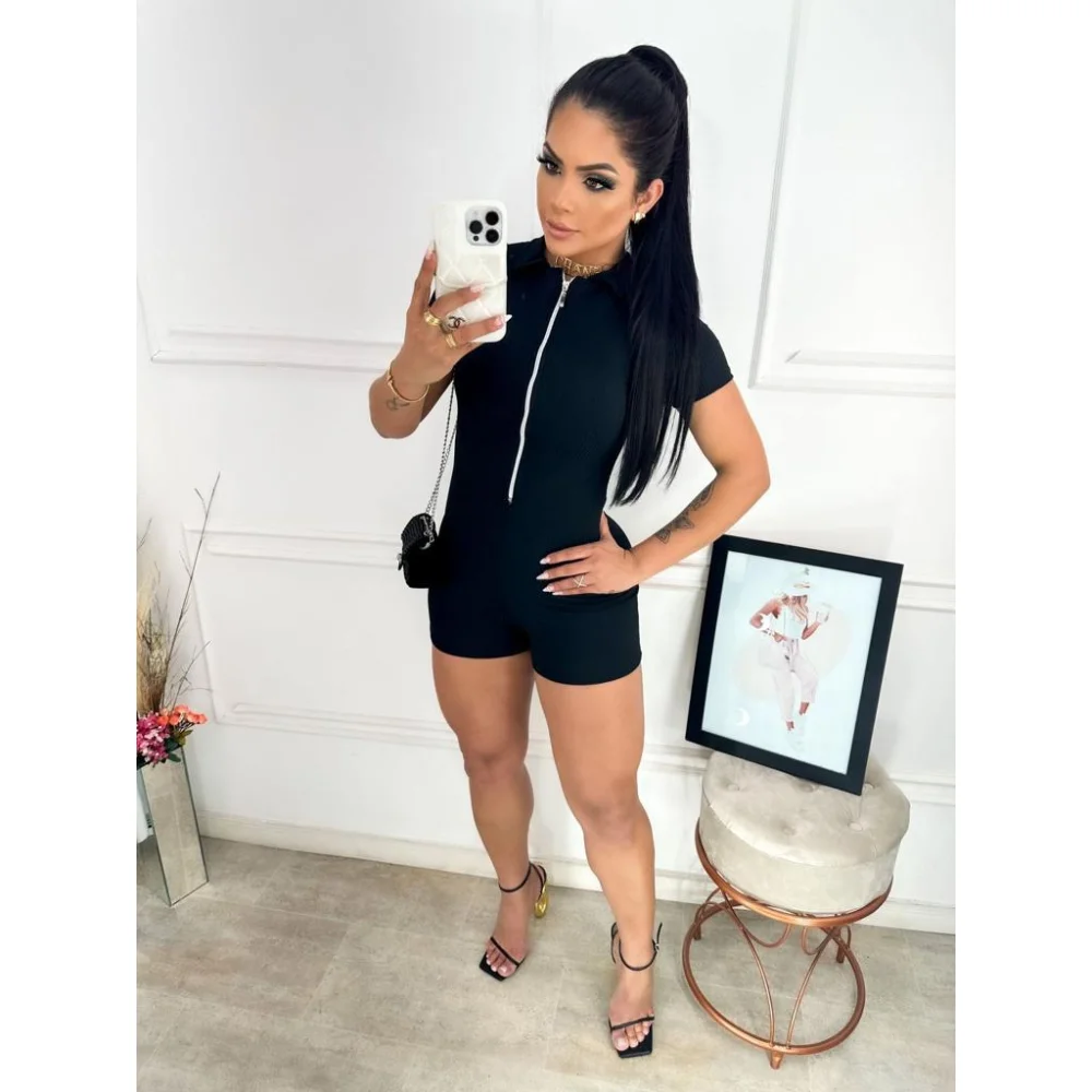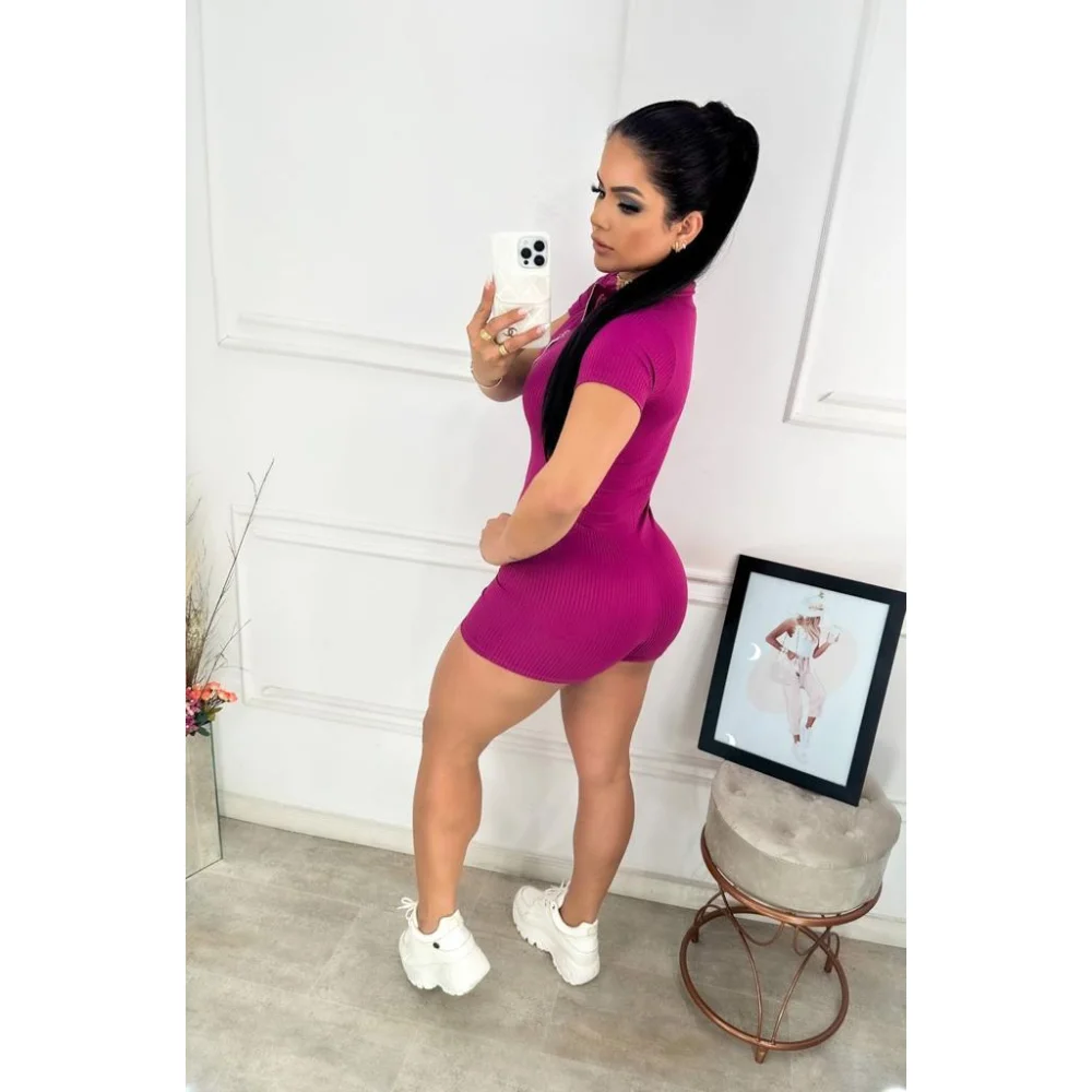 Compre o macaquinho canelado com zíper na loja online de roupas Raryel. Aproveite os preços baixos e promoções exclusivas!